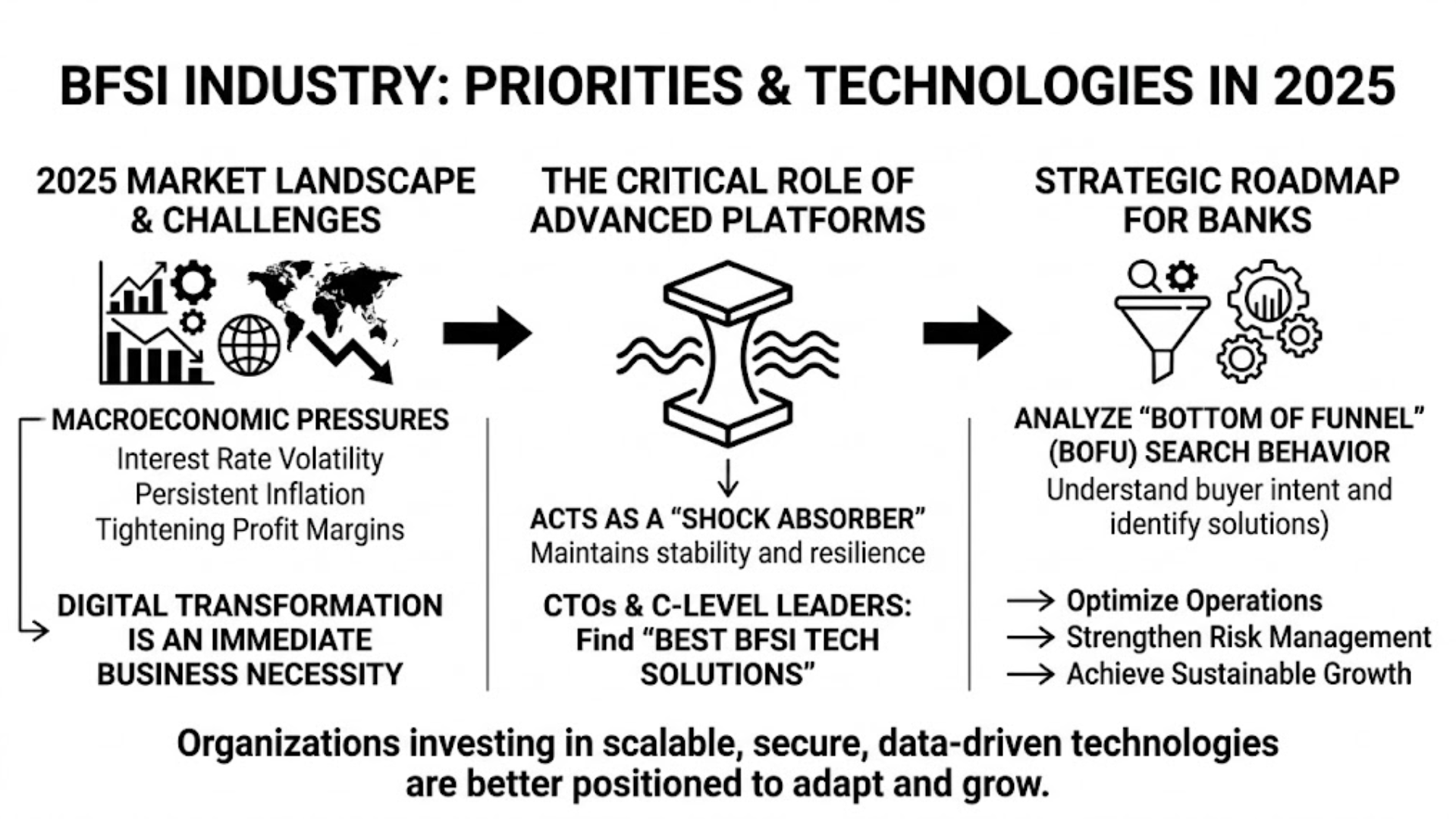 In addition, the report analyzes Bottom of Funnel (BoFU) search behavior among B2B decision-makers, offering valuable context on how buyers identify the best BFSI tech solutions for banks 2025. By combining market intelligence with strategic analysis, this study provides a clear roadmap for banks aiming to optimize operations, strengthen risk management, and achieve sustainable growth.