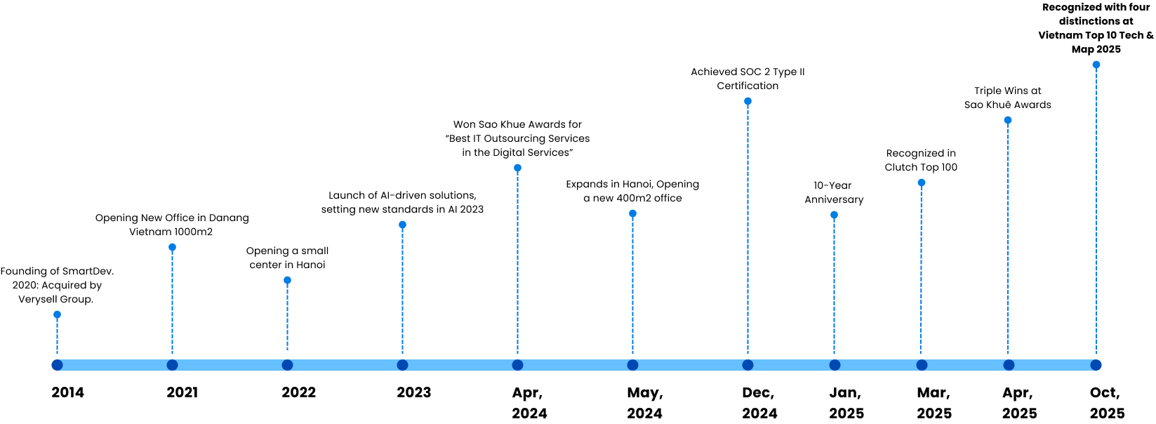 Von Vera, unserem KI-Agenten-Kundenservicesystem, bis hin zu preisgekrönten Fintech-Plattformen wie VeryPay – die KI-gestützte Software von SmartDev verändert Branchen. Wir liefern messbare Ergebnisse – klaren ROI, sichere Codebasen und volle Kundenkontrolle. Unser globales KI-Team besteht aus promovierten Experten und Enterprise-Architekten, die robuste, anpassungsfähige Systeme entwickeln, die auf Ihre Geschäftsanforderungen zugeschnitten sind. Egal, ob Sie Ihre KI-Reise beginnen oder schnell wachsen – wir sind Ihr zuverlässiger Entwicklungspartner.