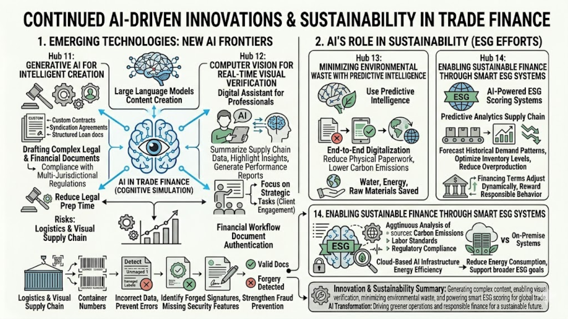 As global supply chains face increasing regulatory pressure and consumer scrutiny, AI in Trade Finance is becoming a key enabler of sustainable transformation. By combining predictive analytics with real-time data intelligence, AI helps financial institutions enforce ESG standards and accelerate the shift toward green finance.