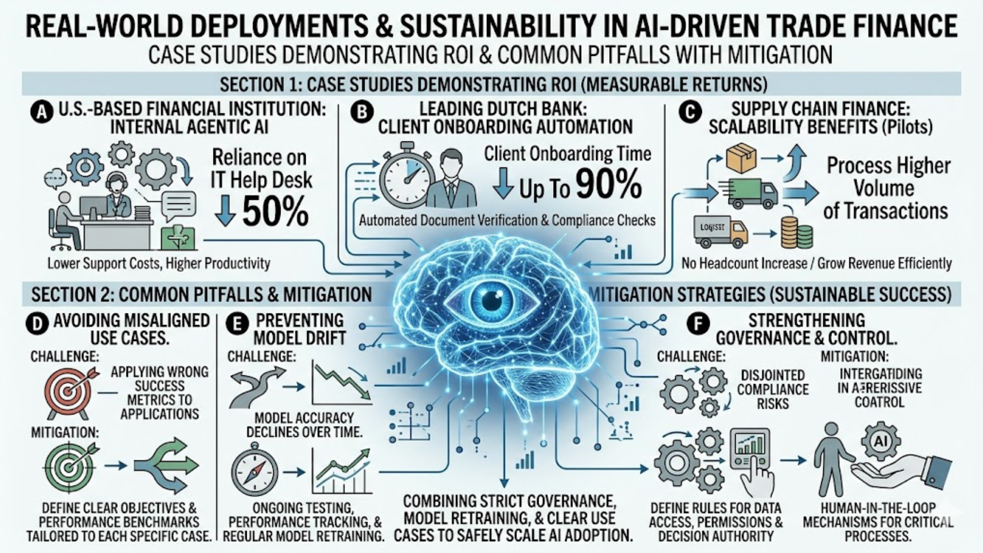 Across the industry, real-world deployments clearly show how AI in Trade Finance delivers measurable return on investment. Financial institutions that focus on targeted use cases are achieving both cost savings and revenue growth.