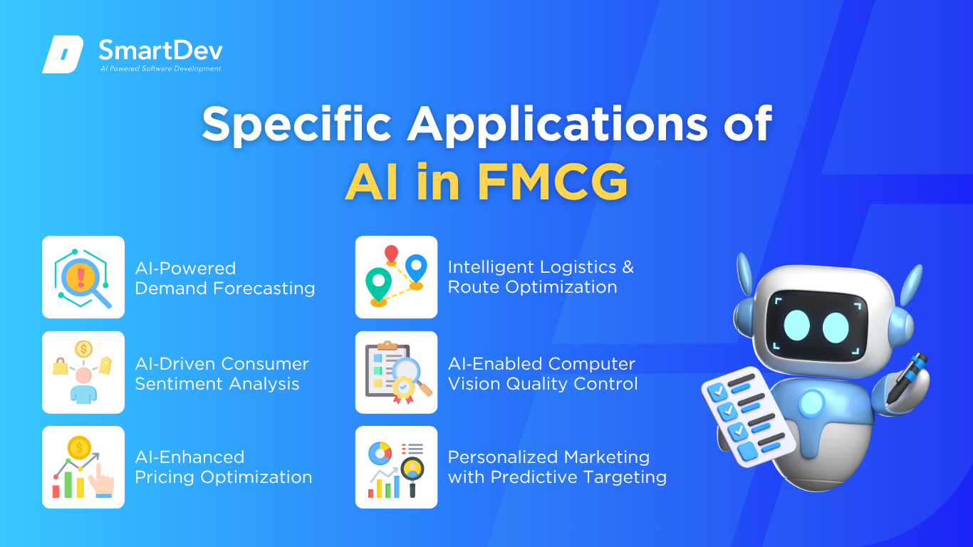 In the FMCG sector, AI is applied to automate and optimize a wide range of functions, from demand forecasting and inventory management to consumer insights and personalized marketing. ML models predict future buying behavior, computer vision monitors shelf stock levels, and NLP tools analyze product reviews and social sentiment. Together, these tools help FMCG companies enhance operational agility, innovate faster, and deliver tailored consumer experiences.