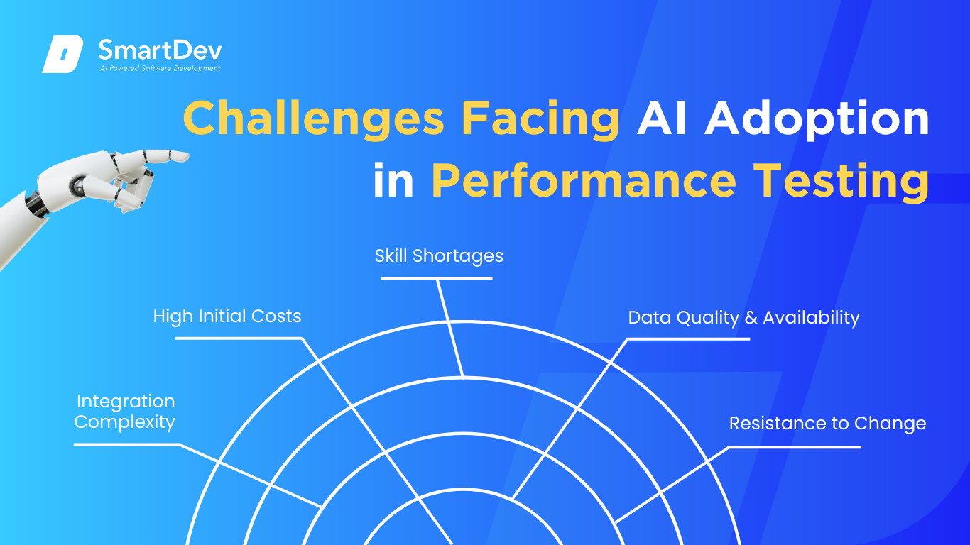 While AI presents significant advantages in performance testing, its adoption comes with several challenges. Issues such as integration complexity, high costs, and skill shortages can hinder successful implementation and use.