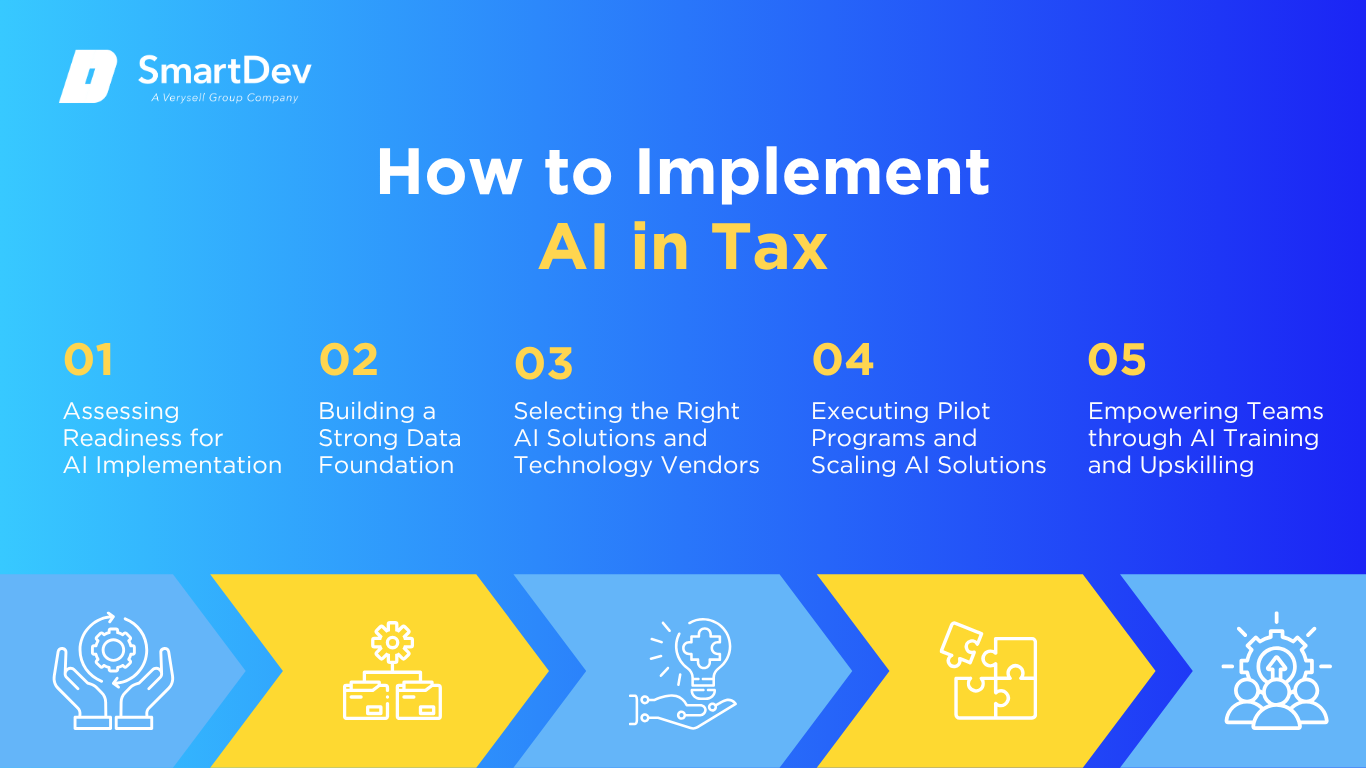 Successfully implementing AI in tax operations requires strategic planning, clean data, and team alignment. From identifying automation opportunities to building scalable pilots, each phase builds the foundation for long-term transformation.