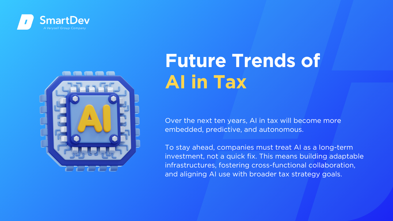 Over the next ten years, AI in tax will become more embedded, predictive, and autonomous. Tax processes that once relied on manual intervention, like compliance monitoring, provision calculations, and global filings, will increasingly run in real time within enterprise systems. AI agents will not only process data but also recommend actions, detect anomalies, and adapt to evolving regulations with minimal oversight.