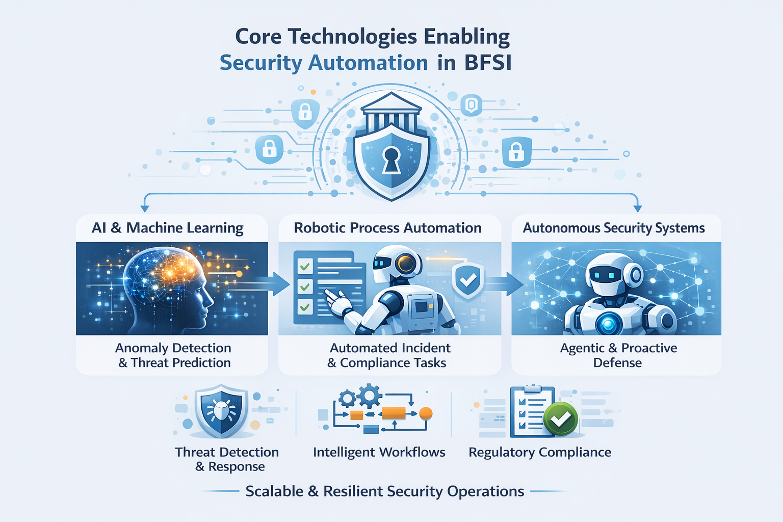 Together, these technologies enable BFSI organizations to scale security operations, automate threat detection and response, and maintain regulatory resilience in an increasingly complex digital environment.