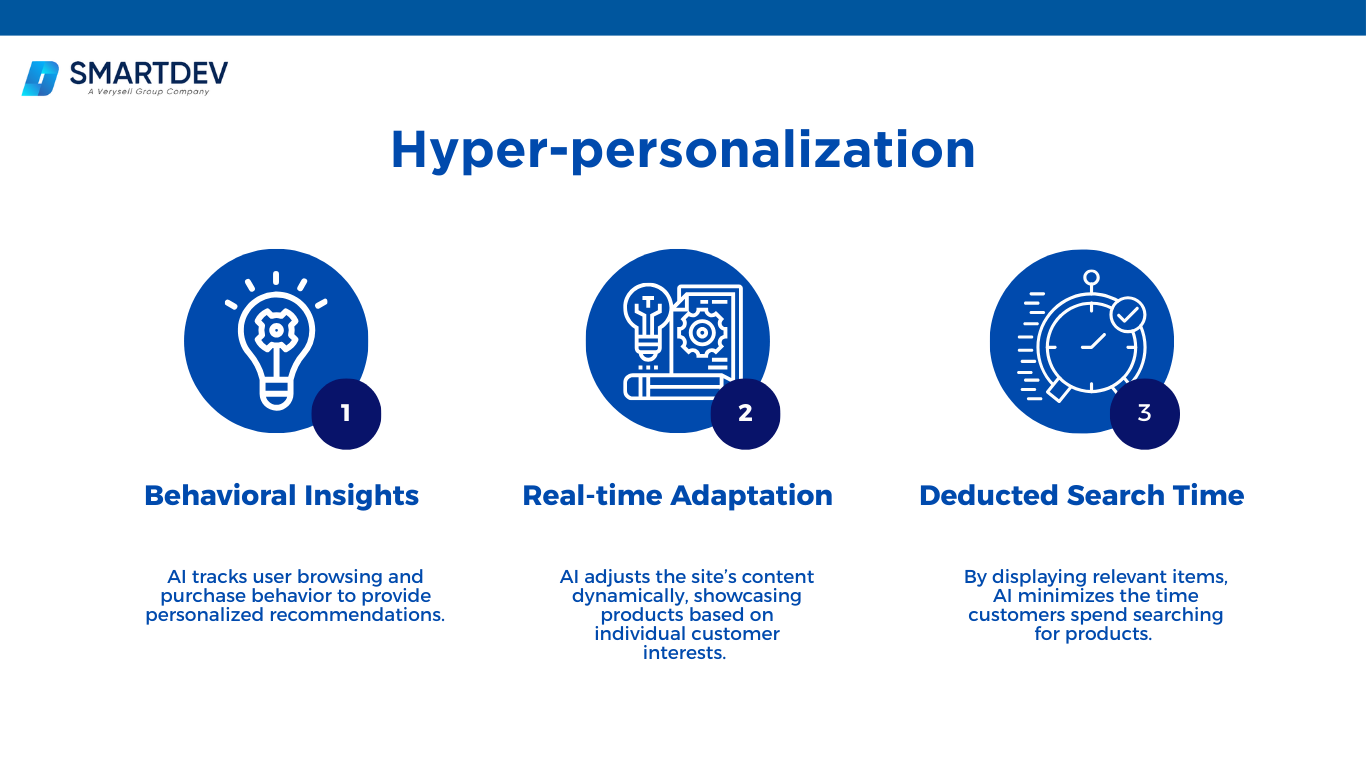 Personalization has always been a goal for online retailers, but AI takes it to the next level by offering hyper-personalization – dynamic experiences that are tailored to everyone based on real-time data, context, and user behavior.