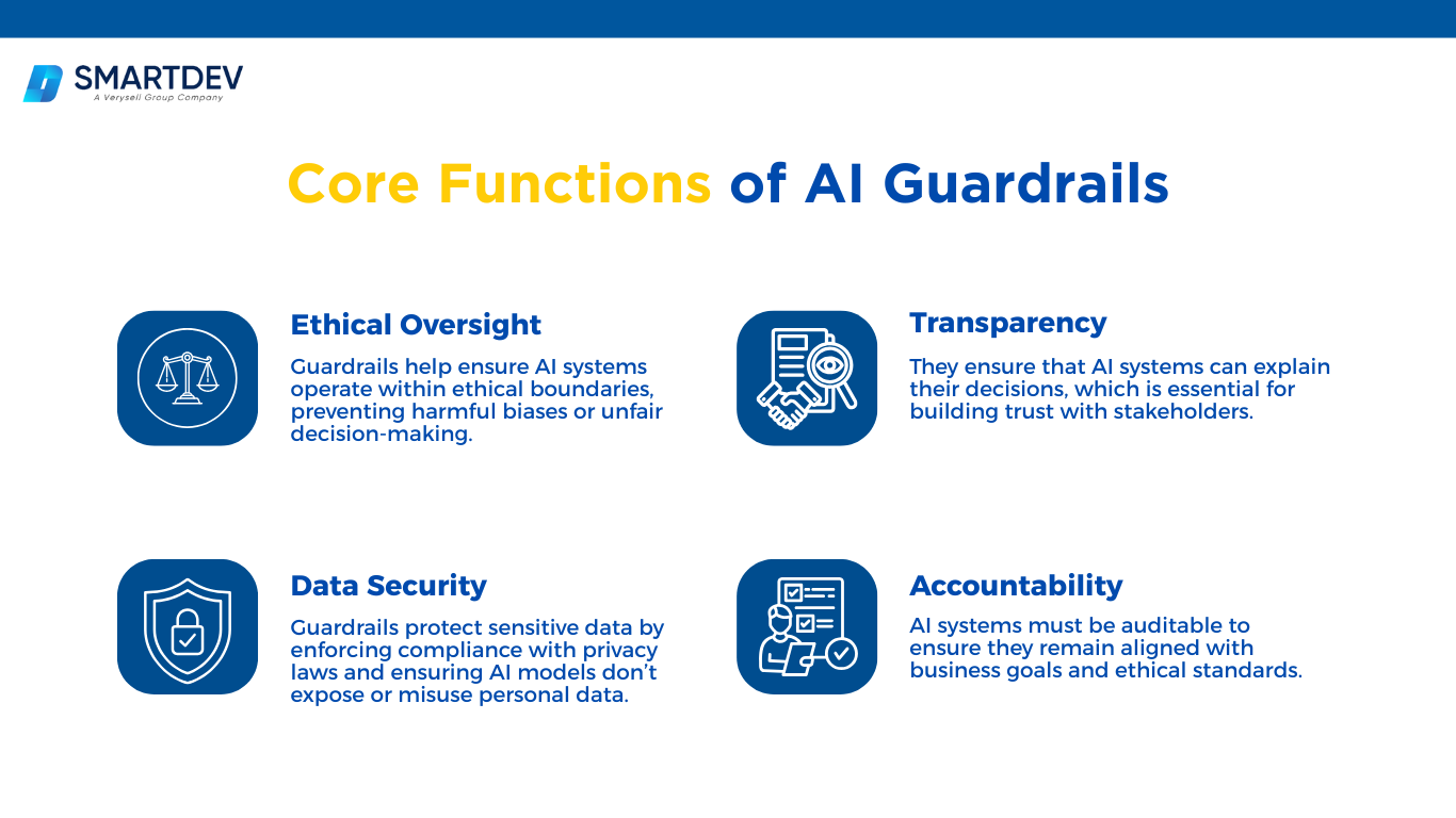 - Ethical Oversight: Guardrails help ensure AI systems operate within ethical boundaries, preventing harmful biases or unfair decision-making.