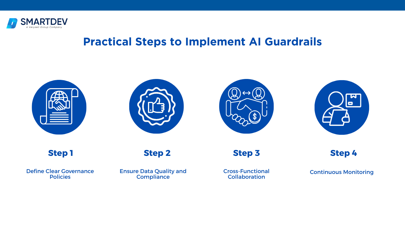 Implementing AI guardrails in your organization is essential for scaling AI safely. Here are practical steps to build these guardrails: