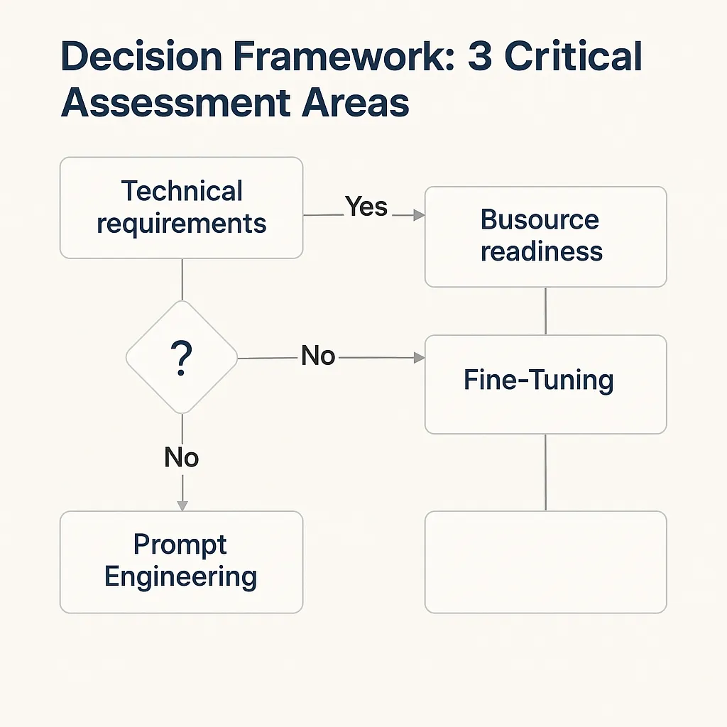 If you answer “no” to the first question, prompt engineering likely suffices. If you answer “yes” to all three, fine-tuning makes sense.