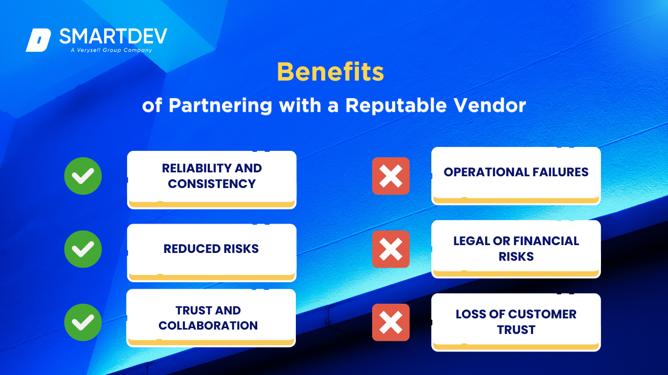 Conversely, partnering with a vendor with a poor reputation can result in significant failures, such as: