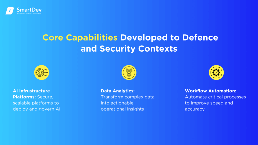 SmartDev is not positioning itself as a defence specialist. Instead, we approach the defence domain as AI engineers and transformation partners who understand how to move from theory to production under strict constraints.