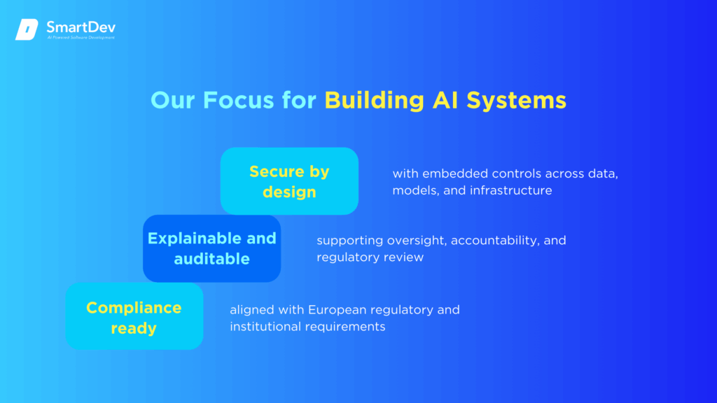 SmartDev enters this space with humility, technical depth, and a clear focus on responsible implementation. We look forward to engaging with partners across Europe to explore how secure, explainable, and compliance ready AI systems can support defence objectives in a practical and sustainable way.