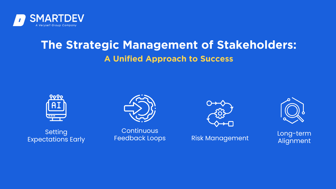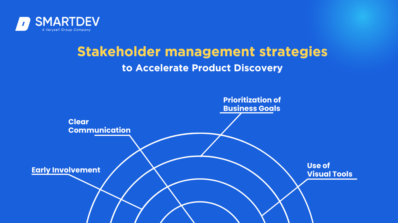 Effective stakeholder management strategies are key to accelerating product discovery. At SmartDev, we prioritize managing stakeholder expectations and ensuring everyone is aligned on the project’s goals. Some of the strategies we use include: