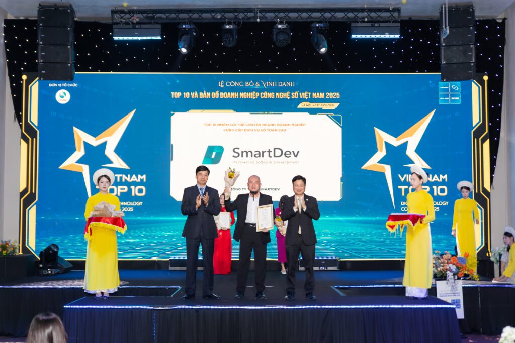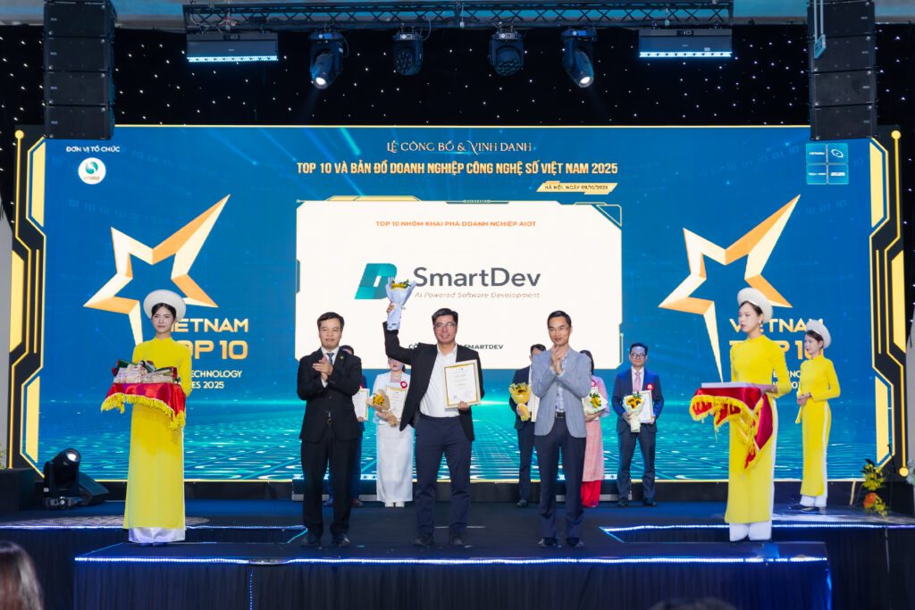 At the Vietnam Top 10 Tech & Map 2025 Recognition Ceremony held in Hanoi on October 9, 2025, SmartDev was honored with four distinctions across two major categories: Global IT Services and A-IoT (AI & Internet of Things).