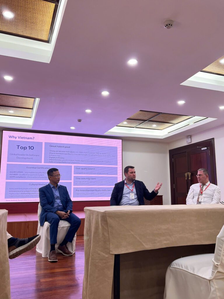 The panel also examined best practices for cross-border partnerships, including contracting, data protection, quality assurance and governance, key topics for companies operating across borders. Petr emphasized that SmartDev’s success story is built on resilient, high-performing offshore teams and a blend of Swiss discipline with Vietnamese adaptability.