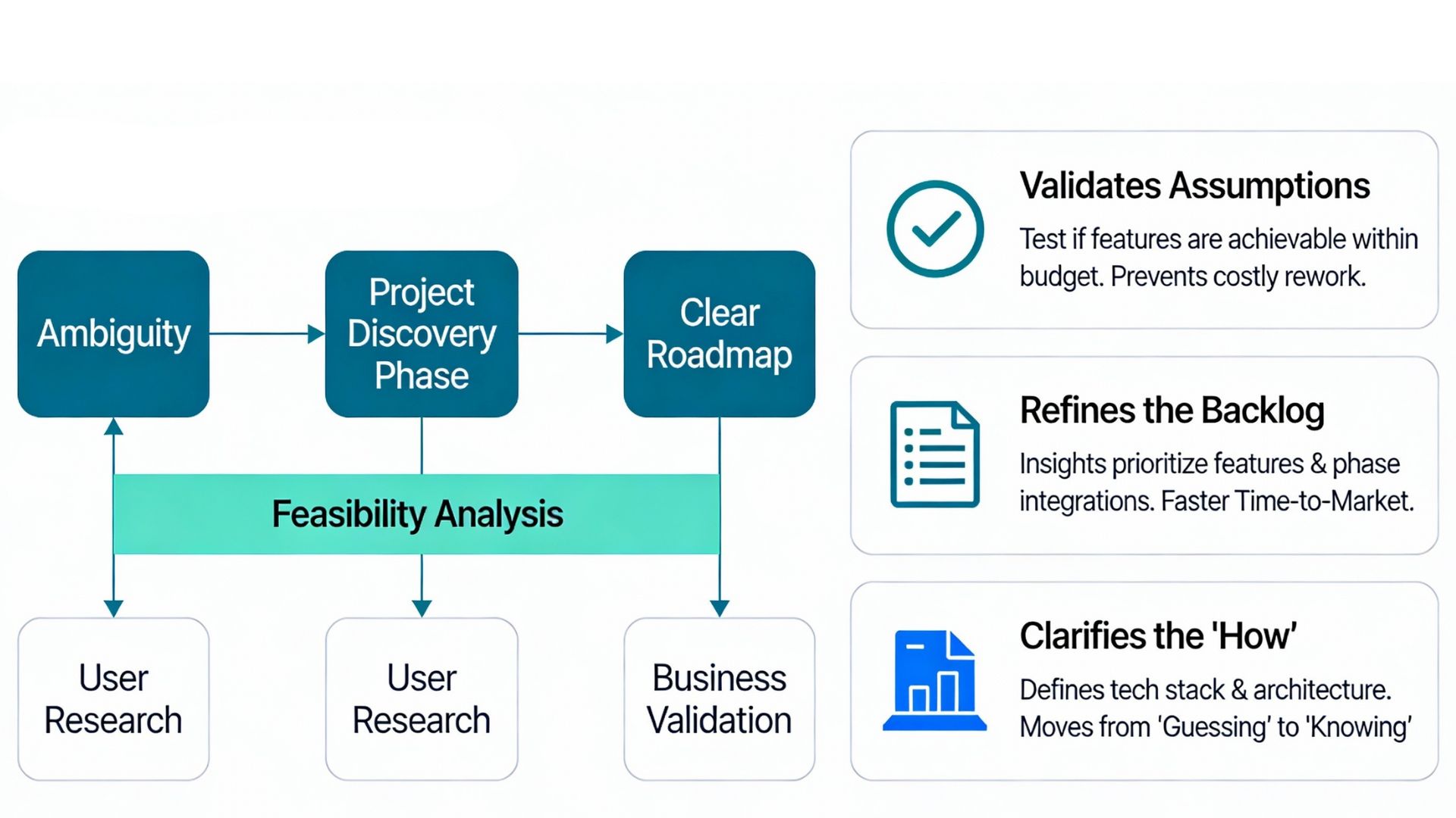 De-risk your investment, align stakeholders around a clear technical strategy, and make confident go/no-go decisions backed by comprehensive feasibility analysis.