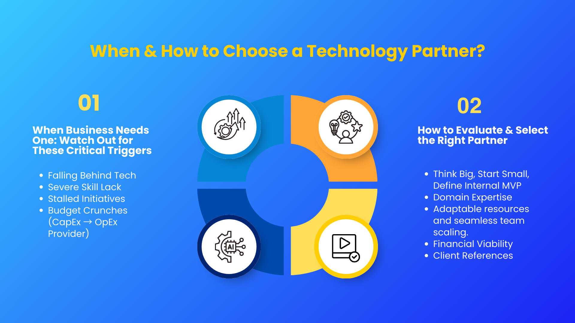 - Falling behind on emerging tech: When an organization is caught up in daily operations (“tunnel vision”) and cannot keep up with rapidly evolving technologies (like Generative AI or Cloud Migration), a partner brings a fresh, innovative perspective.