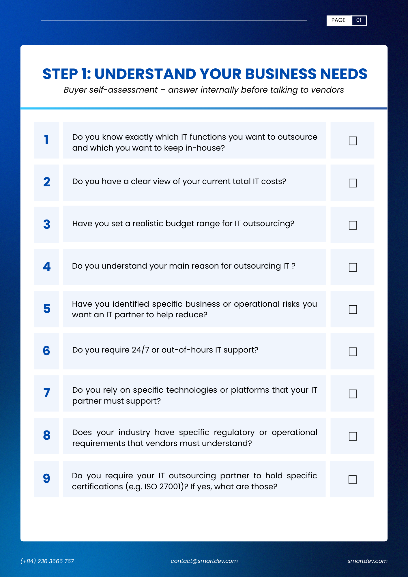Clarify your IT outsourcing scope, priorities, and risk areas before engaging vendors