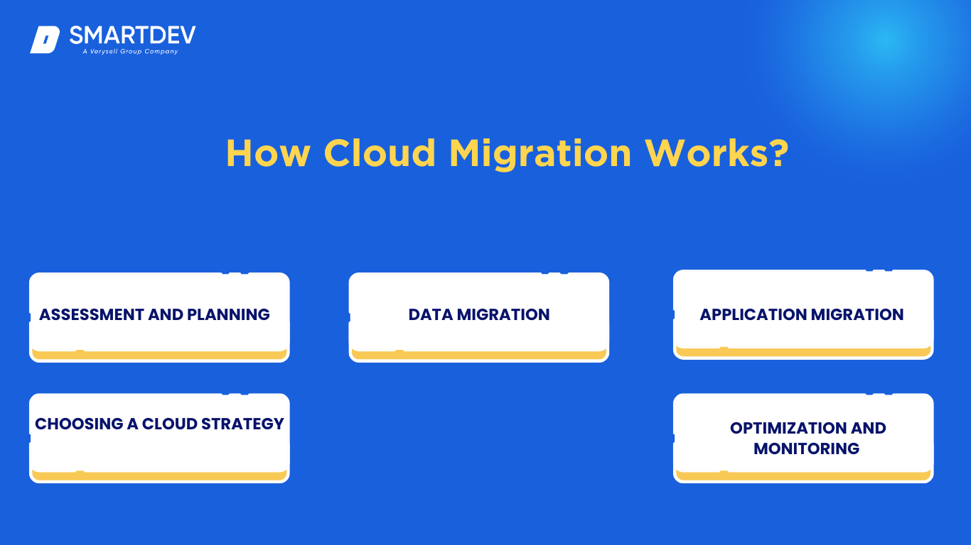 Cloud migration typically involves structured planning, assessment, and execution to ensure minimal disruption to business operations. The process includes several important stages:Â