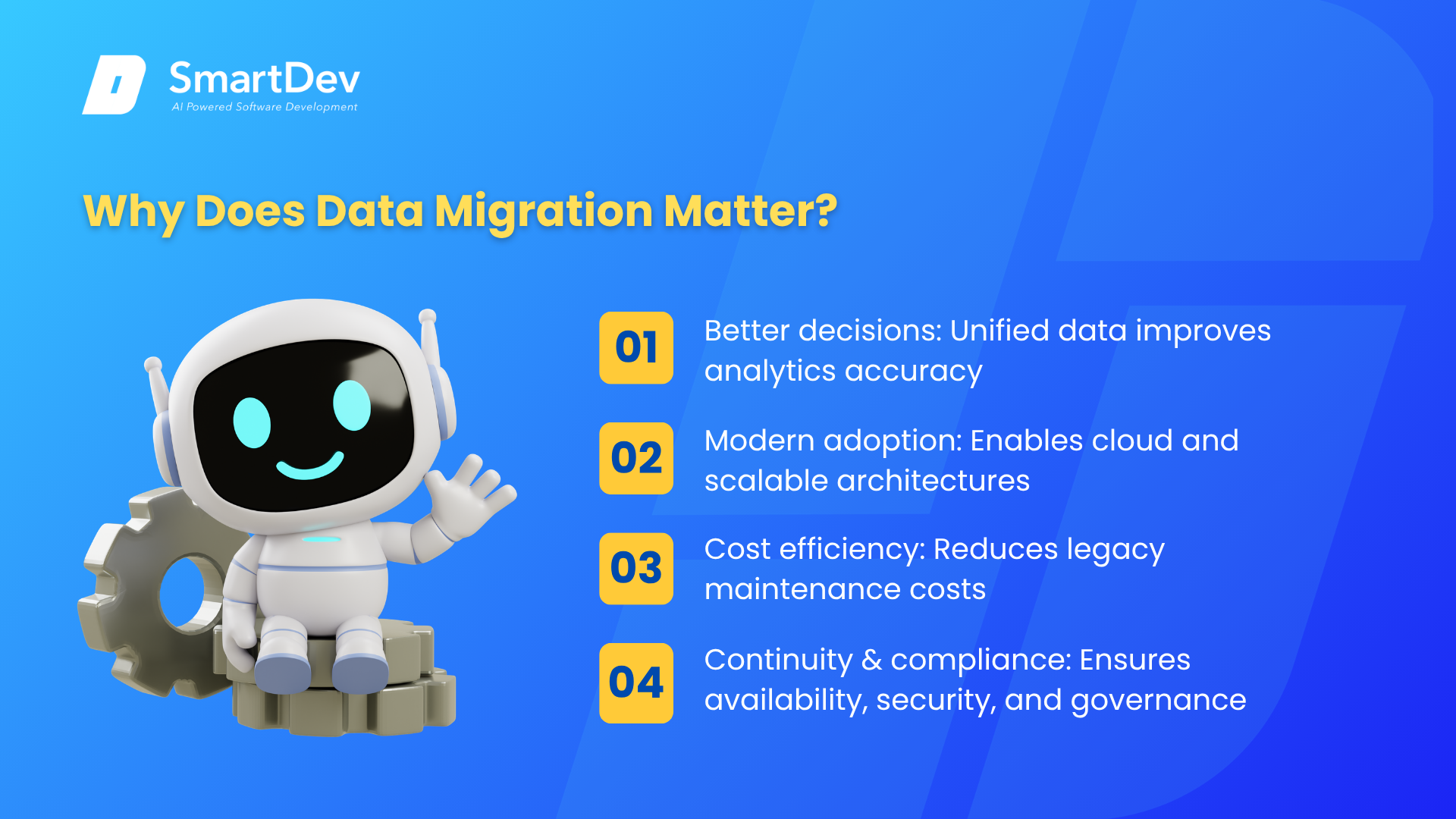 Data migration plays a critical role in enabling digital transformation, scalability, and data-driven decision-making. Without proper migration, companies risk losing valuable information, disrupting operations, and increasing security vulnerabilities.Â