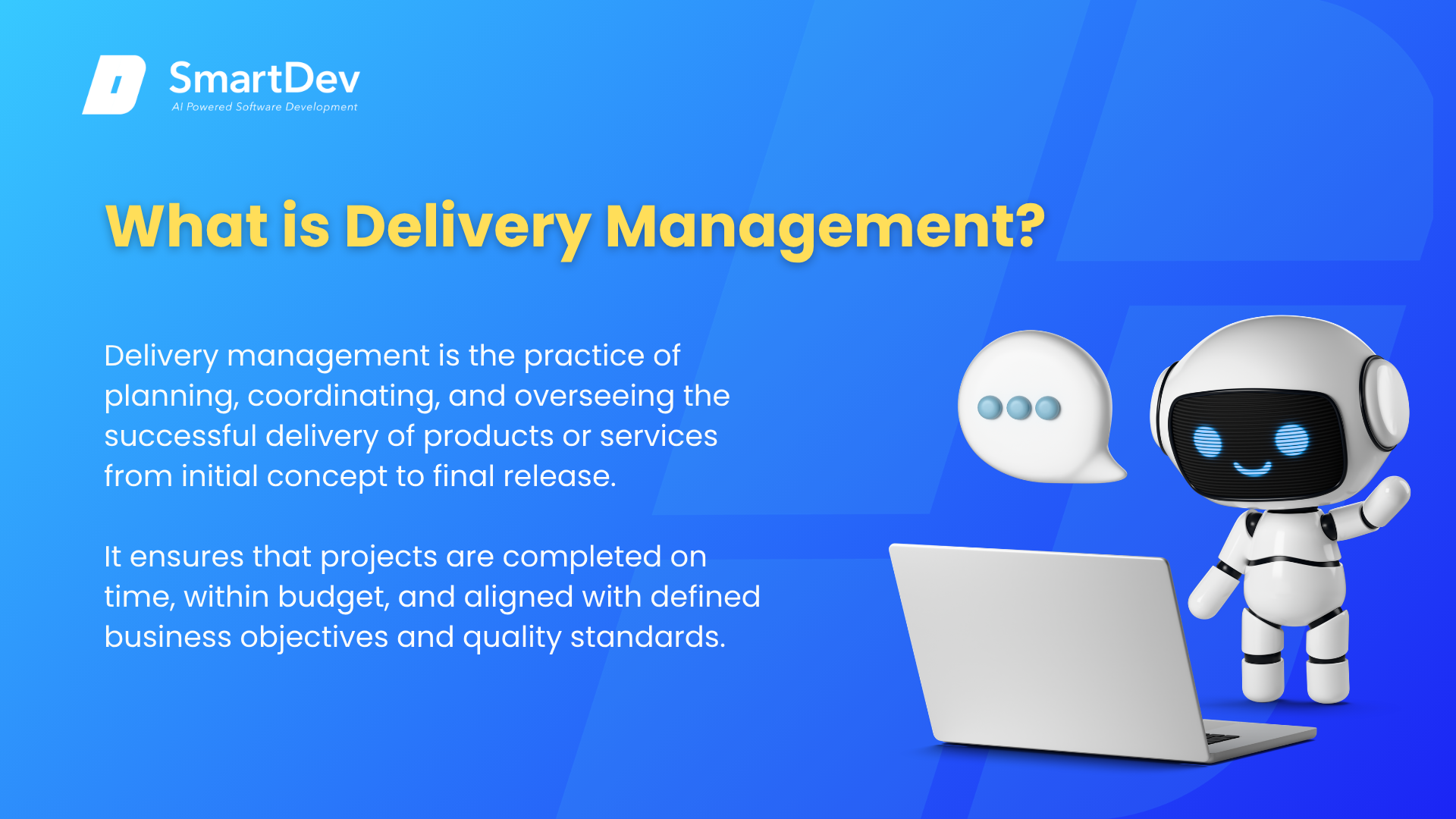 Delivery management is the practice of planning, coordinating, and overseeing the successful delivery of products or services from initial concept to final release. It ensures that projects are completed on time, within budget, and aligned with defined business objectives and quality standards.