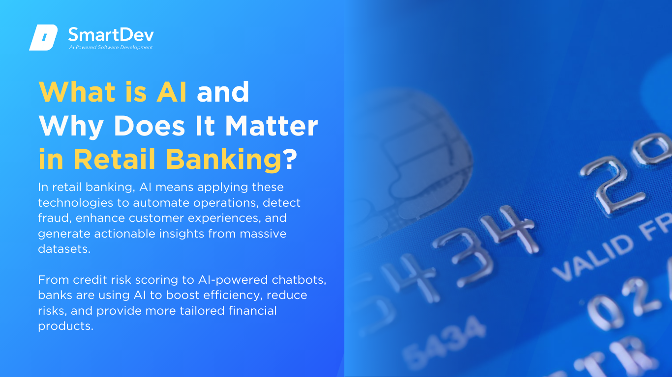 In retail banking, AI means applying these technologies to automate operations, detect fraud, enhance customer experiences, and generate actionable insights from massive datasets. From credit risk scoring to AI-powered chatbots, banks are using AI to boost efficiency, reduce risks, and provide more tailored financial products.