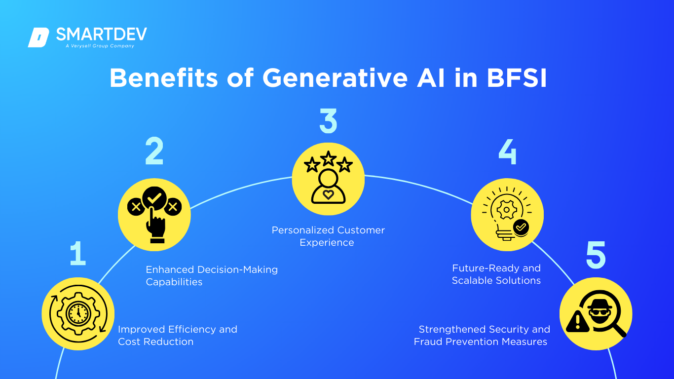 Partnering with SmartDev offers numerous benefits for BFSI firms looking to integrate generative AI into their operations: