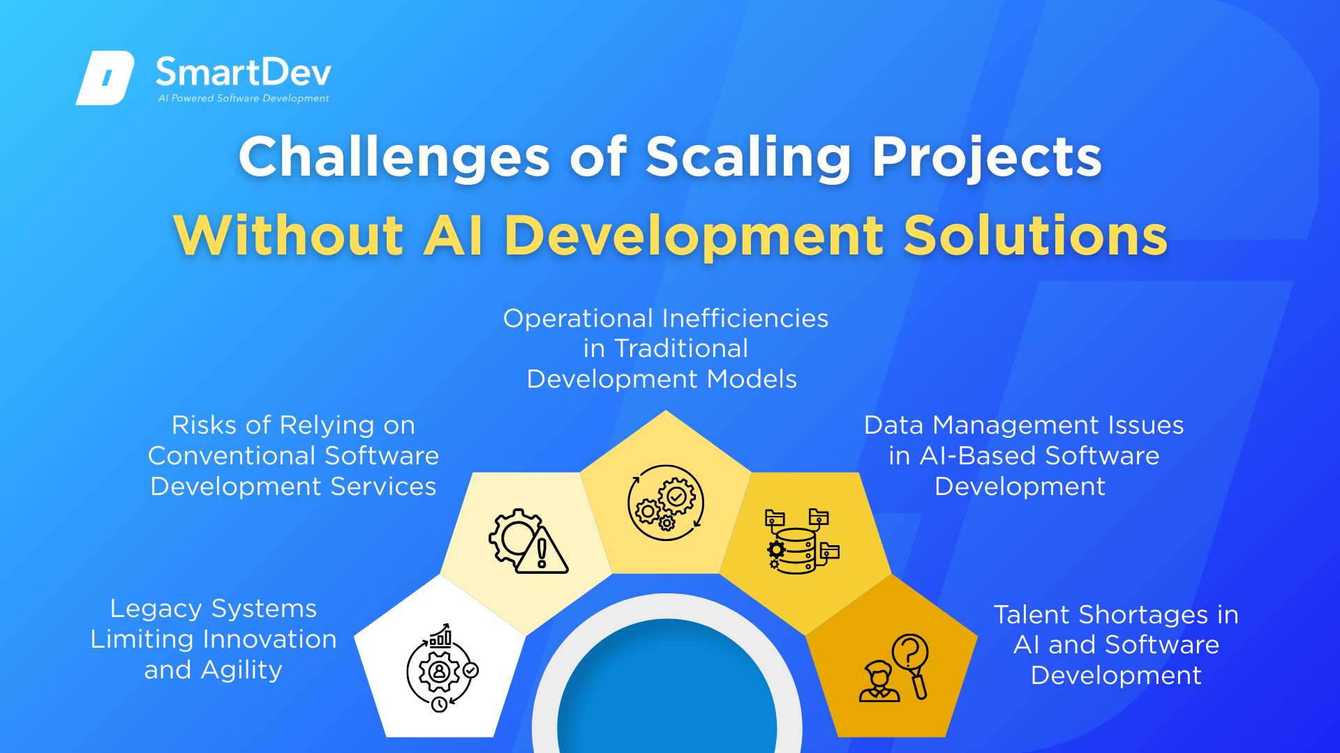 Conventional software development often lacks the agility needed to handle rapid scaling. These methods cannot easily adapt to fluctuating demand, new technologies, or evolving customer needs. As a result, enterprises relying solely on traditional approaches face higher risks of stagnation.