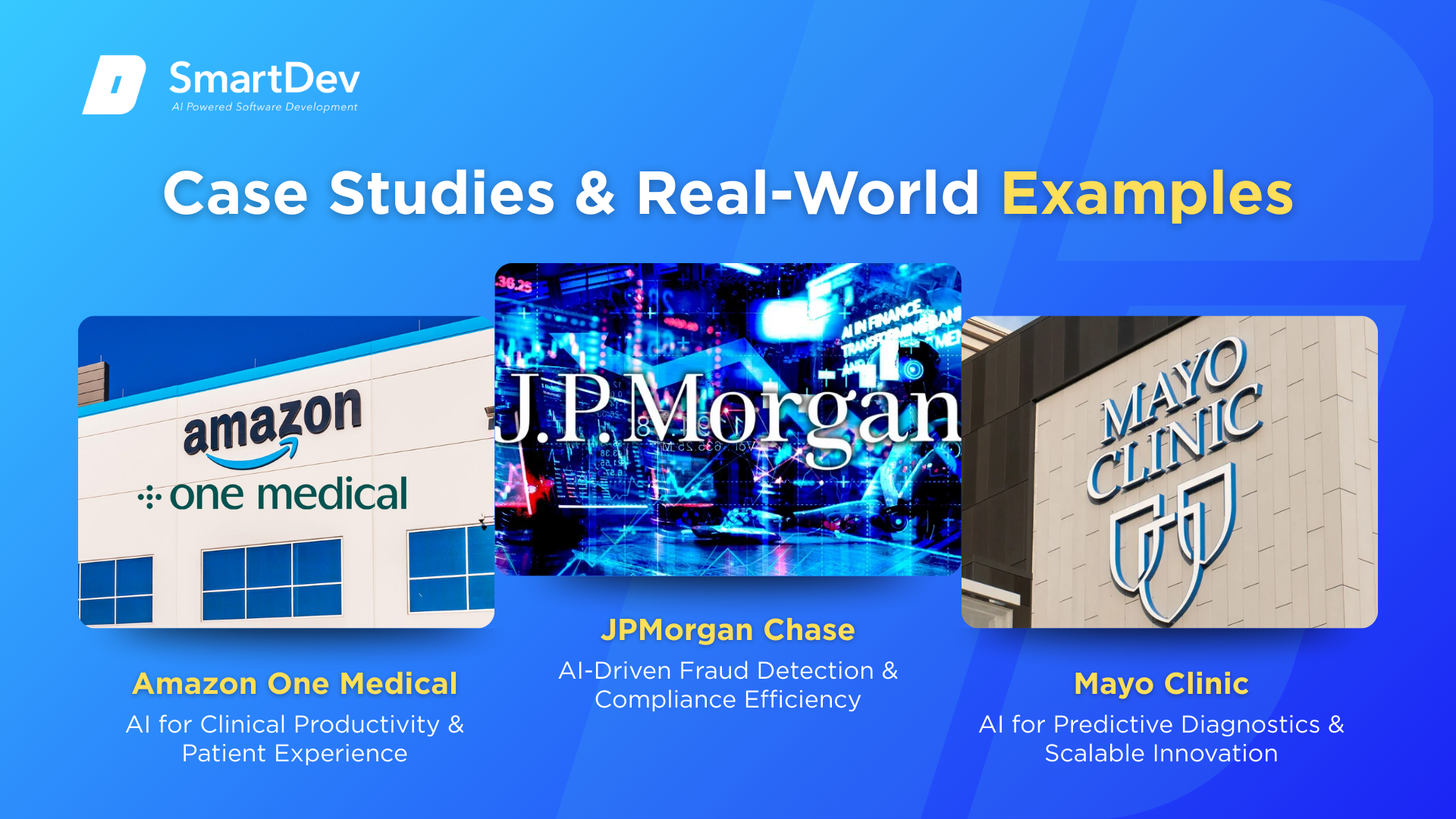 Case studies demonstrate how enterprises translate AI partnerships into measurable business value. Across sectors such as finance, retail, and healthcare, AI solutions have delivered efficiency gains, cost savings, and improved customer experiences.